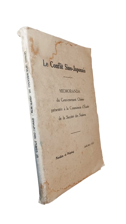Publiés en 1932, ces memoranda constituent la documentation officielle présentée par la Chine à la Commission d’étude de la Société des Nations (Commission Lytton) pour dénoncer l’invasion japonaise en Mandchourie débutée en septembre 1931. Ces documents détaillent les actes d’agression, la création d’un État fantoche (Mandchoukouo) et soutiennent que le Japon viole le Pacte de la SDN