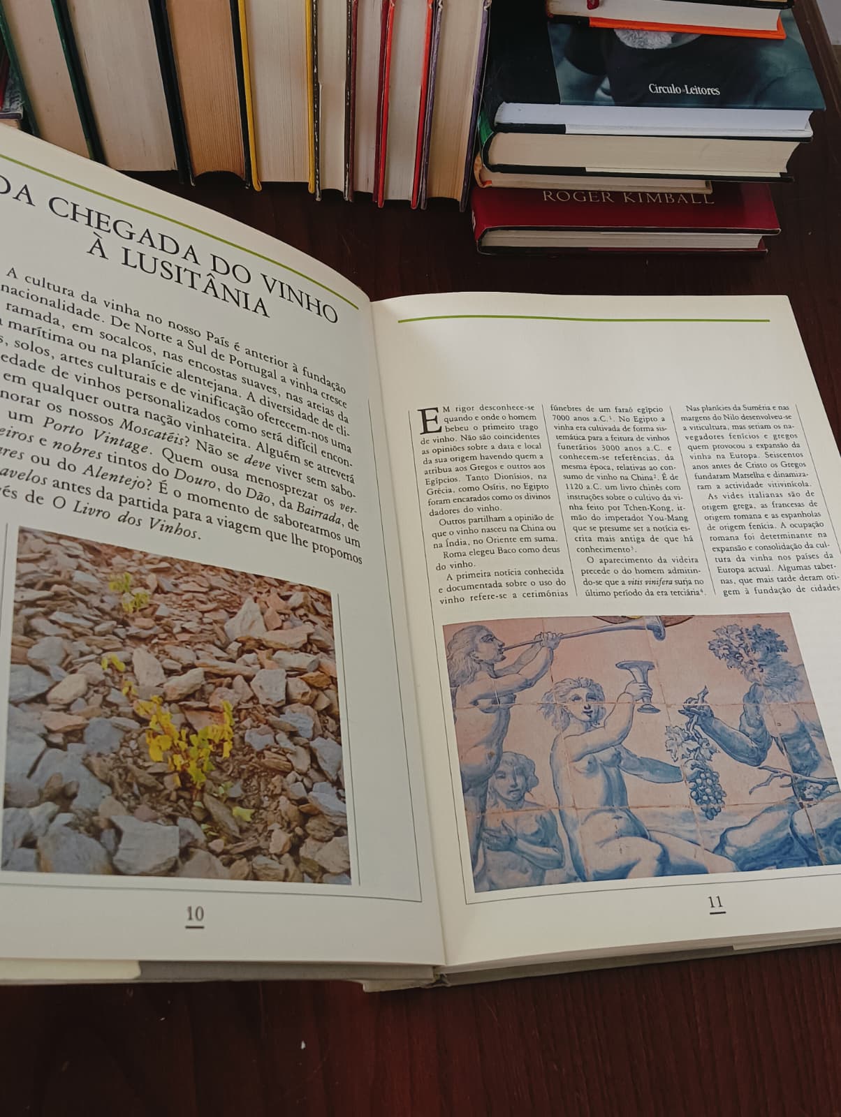 “A cultura da vinha no país é anterior à fundação da nacionalidade. De Norte a Sul de Portugal cresce em ramada, em socalcos, nas encostas suaves, nas areias da orla marítima e na planície alentejana. A diversidade de climas, solos, artes culturais e de vinificação proporcionam-nos uma variedade de vinhos como se encontre em qualquer hora. Alguém se atreverá a ignorar os nossos Moscatéis ? Não é viver sem saborear um Porto Vintage . Quem ousa menosprezar os verdadeiros e nobres tintos do Douro , do Dão , da Bairrada , de Colares ou do Alentejo ? É o momento de saborearmos um Carcavelos antes da partida para uma viagem que lhe proponha através deO Livro dos Vinhos.” — retirado da Apresentação.